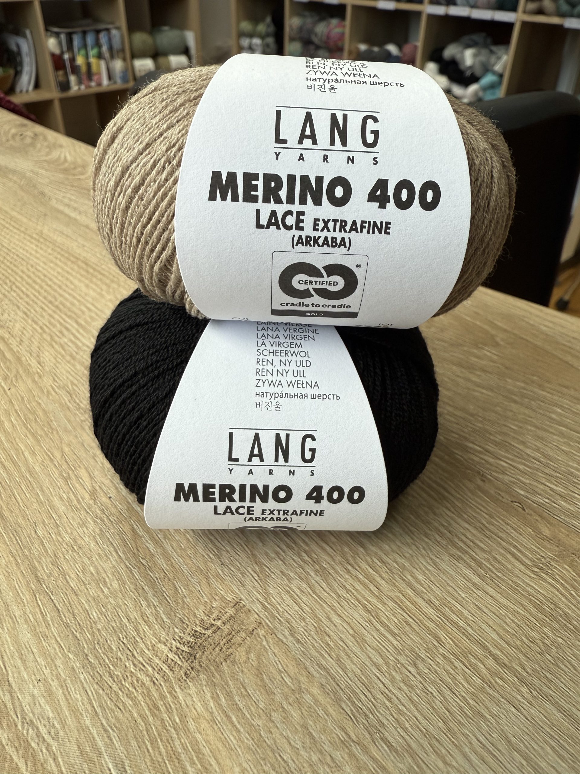 Lang Yarns Merino 400 Lace est une laine mérinos extrafine, filée en un fil de poids dentelle classique, parfait pour les articles légers ou à tenir avec d’autres fils.